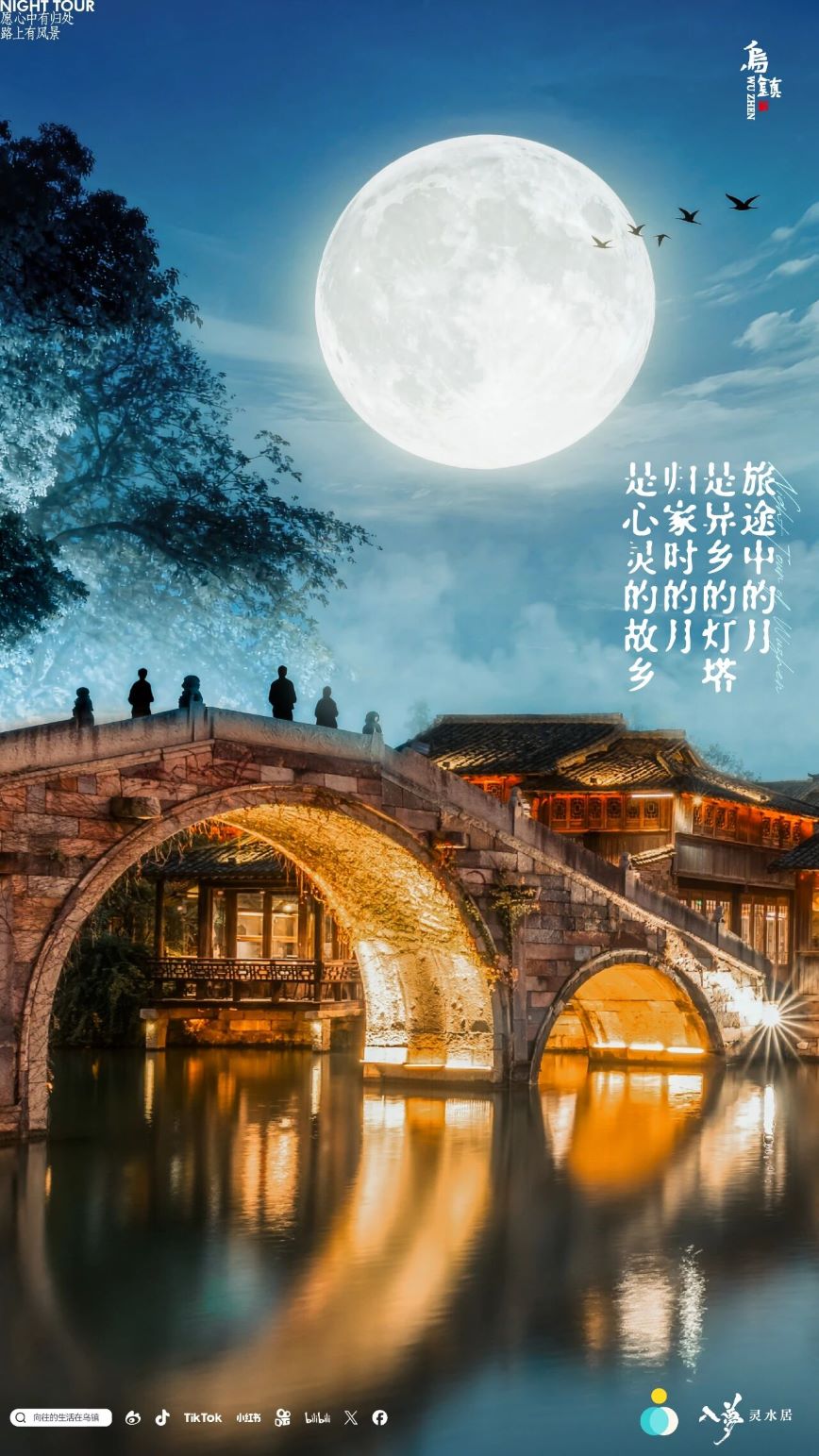 国庆邂逅中秋,乌镇今夜别样璀璨!当暮色漫过水乡,不妨提一盏灯,随人流走过祈福的石桥,去“昭明月集”淘选一件心仪好物,去水剧场追漫天泡泡,在庄重的祭月大典中分一块团圆月饼,最后在灵水居光影秀中沉浸式体验江南中秋夜的诗意与浪漫。