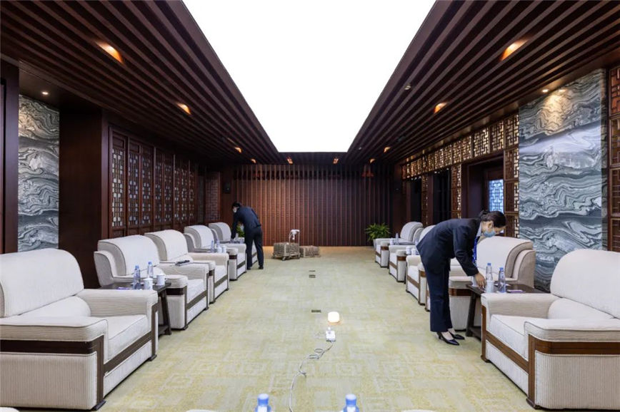 互联网大咖们在论坛和咖荟激荡思想、寻求共识,为建设网络空间命运共同体出谋划策,这背后离不开乌旅人的辛勤付出,乌旅人为了这场大会,早早做足了准备,小到一桌一椅的摆放,大到整个大会全方位的布展,乌旅人都认真督查,只为一场完美的呈现。