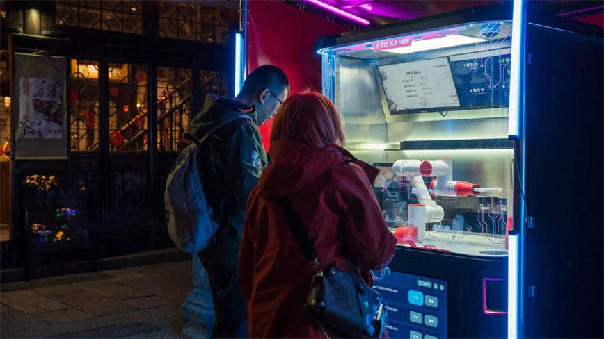景区内更有机器人做咖啡、机器人制作冰淇淋、AIGC摄影等互动体验,给你的新年旅程增添一份“未来感”。乌镇不仅有古色古香的水乡风情,还有充满未来感的春节新玩法,这里的新年,可谓是科技感十足!