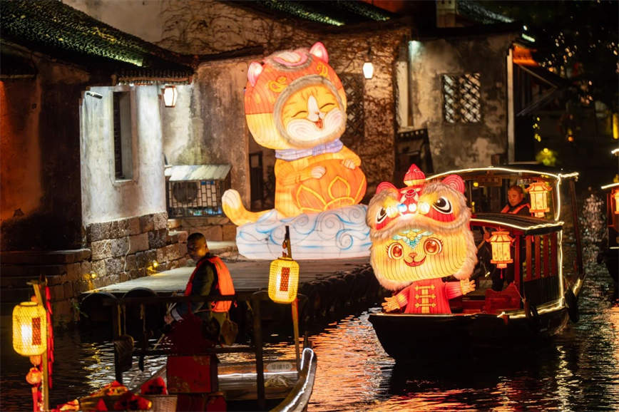 年味不止八天!春节期间最受欢迎的花灯展,将持续点亮。夜幕下,水上花灯,流光溢彩,昭明书院五彩鲤鱼花灯倒映水面,仿佛整个乌镇都沉浸在光影梦境之中。