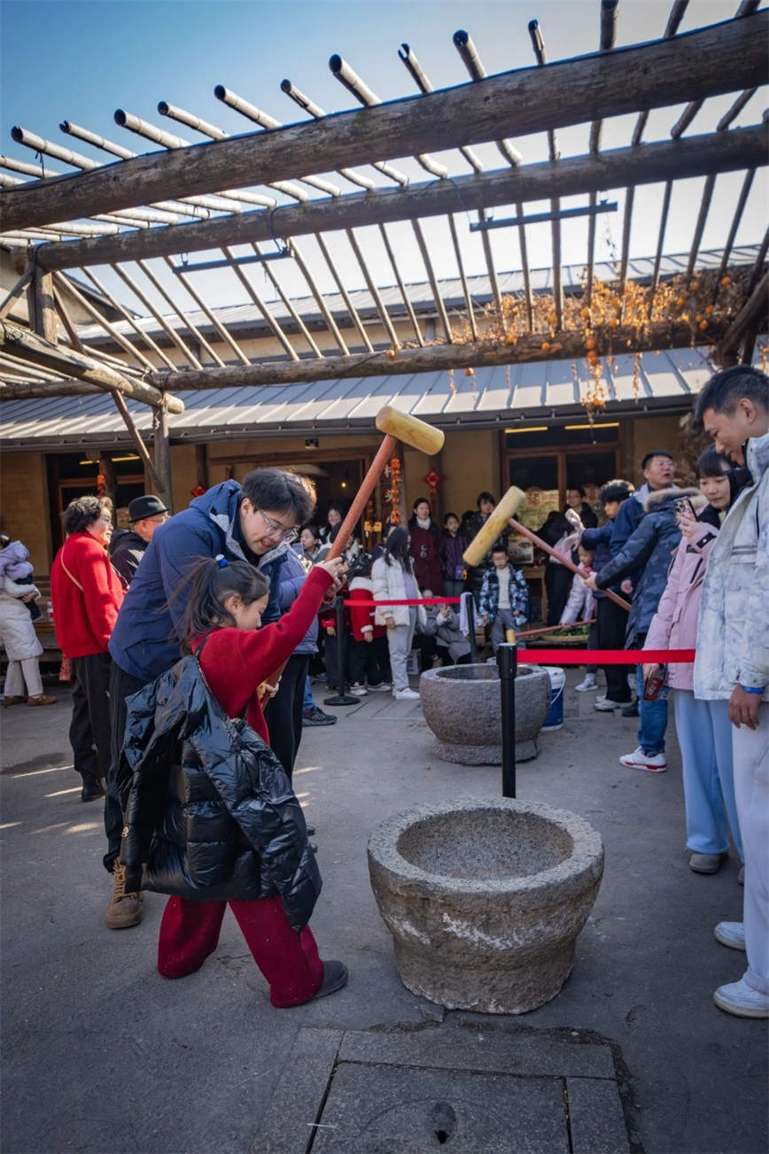 无论是带着孩子在田野间奔跑,还是亲手手体验农耕年俗,打年糕、磨豆腐等体验活动都能让游客亲手触摸年味的醇厚。同时,精心策划年猪赛跑、春节趣味运动会、村野厨房等富有乡村乐趣的游戏,都能感受到不一样的乡村年味。