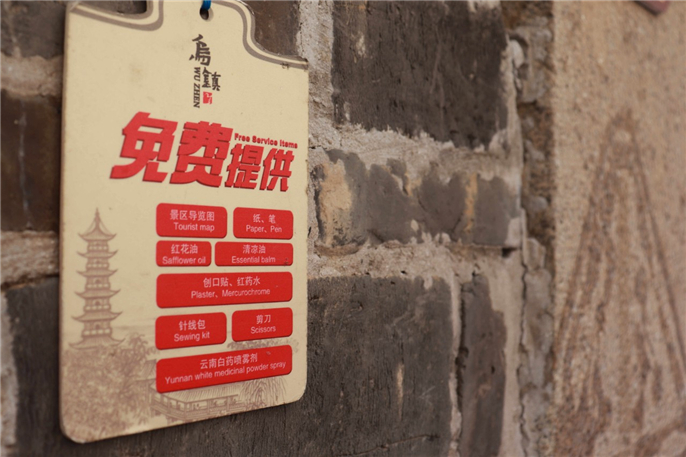 每个卫生间都有免费提供景区导览图、红花油、清凉油等游玩必备物品。同时还配备了针线包、剪刀等物品,以备游客的不时之需。