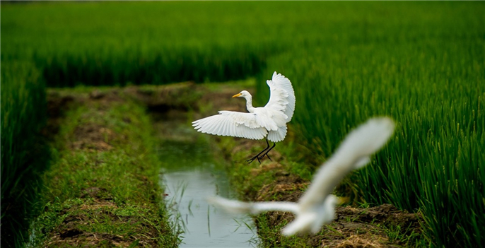 春天时,稻田里是一片绿油油,秧苗间虫鸣鸟叫,生机盎然;深秋时,丰收的金黄色占据了村子的农田,置身其中,让人无端地想叹一句:大自然从不吝于对人类的馈赠,勤劳的人,四处皆是风景。