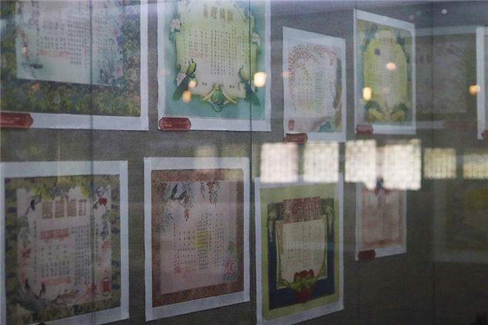 穿过展示江南婚俗礼仪的展厅,沿着楼梯步上二楼,即是摆满了各个年代“婚书”的展厅。不时有情侣游人驻足,细细品读期间文字。