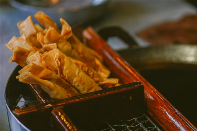 “滋啦一声”,春卷和萝卜丝饼在滚烫的热油里翻滚几下,香味就能顺着西栅大街飘出去老远。