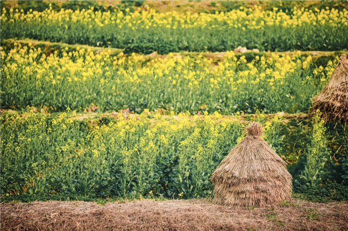 经过丰收的深秋,漫长的隆冬,三月的油菜花开得盛,正等着五月的丰收。