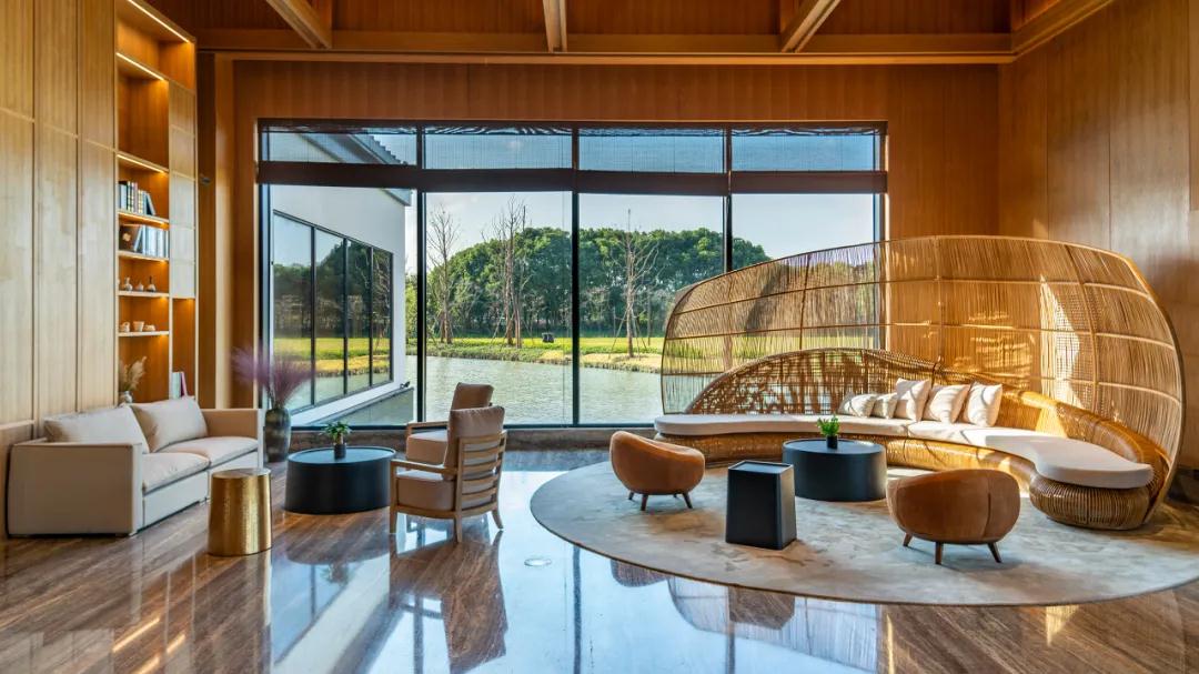 全新的稻舍乡村度假酒店则与国际会展中心相邻,从酒店出门步行不过数分钟便可到达。这家结合了最新前沿设计风格,拥有餐厅、酒店、图书馆、商务会议室等的综合体酒店从设施设备端满足入住的嘉宾们的多数需求。