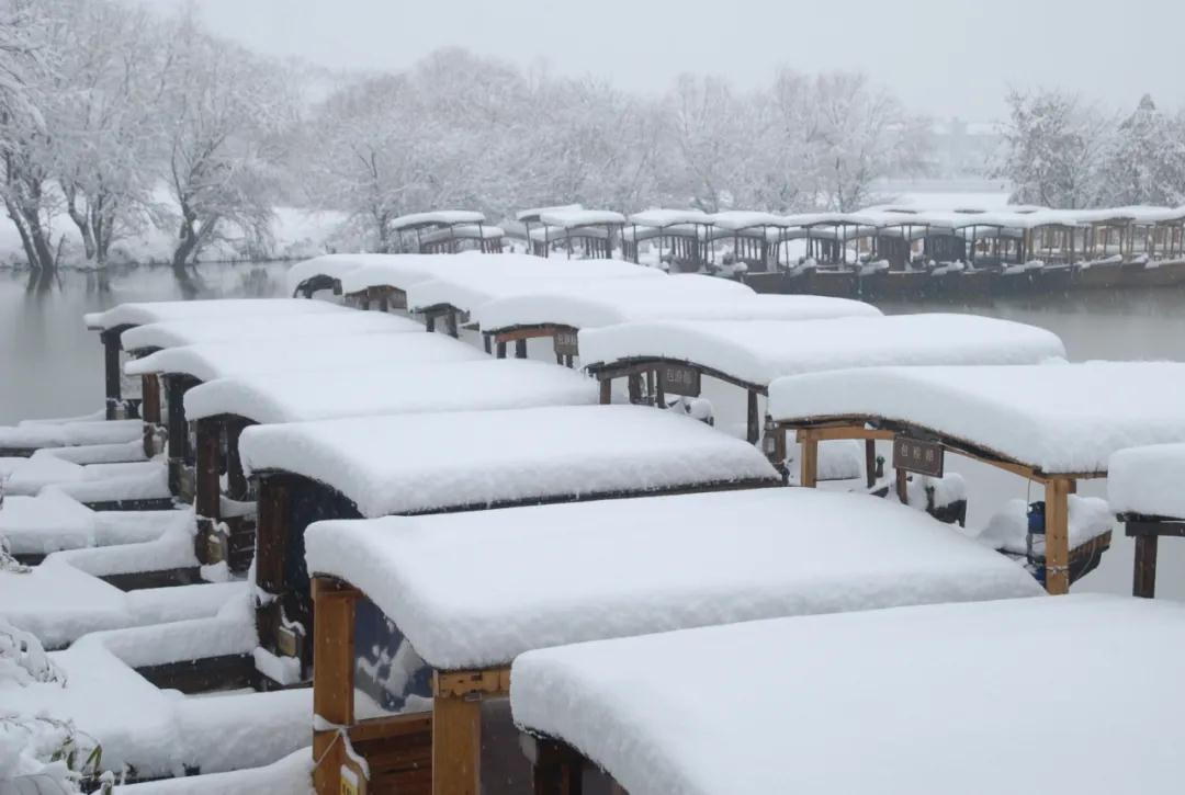 不管是在过去还是现在,慢悠悠的摇橹船,都是体验乌镇的浪漫方式之一。看着落雪白墙、浮水游人,一切都那么自然而然的逍遥自在。