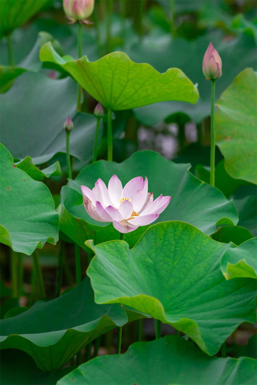 荷间、夜风中、明月下,古往今来的文人偶得清凉写就诗篇,在绿荫中静听岁月如流水悠然。“每忆儿时景,莲叶何田田。”七月的荷花含着夏日的盈盈荷意,红蕖绿水交相映。