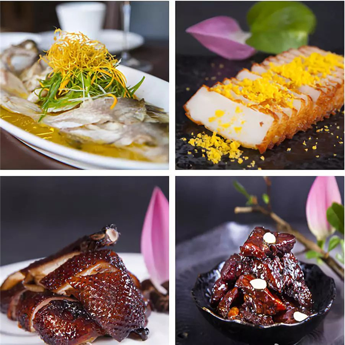 置身于望津里花园餐厅,春天岸边桃红柳绿,夏有清香的荷花,秋有饱满的莲蓬,冬日水波不兴。江南盛夏炎热,开放式餐厅设置有流水循环系统,还有加冰电风扇,不仅降温解暑也彰显海派情怀。在此用餐,令人心旷神怡。