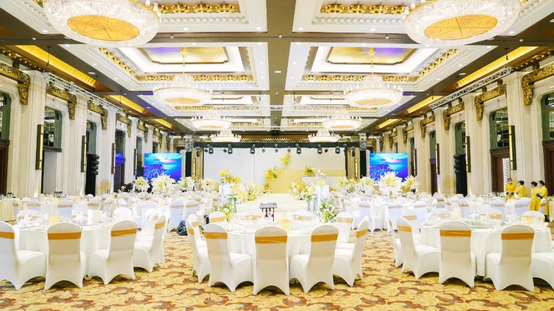 伊甸园铂金酒店拥有1800㎡巴洛克风格的英皇宫,整体布局金碧辉煌,中西合璧式的建筑风格,实现了古典现代交融,是以“西式”为主题的婚礼宴会厅。